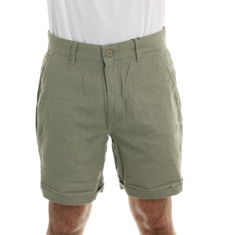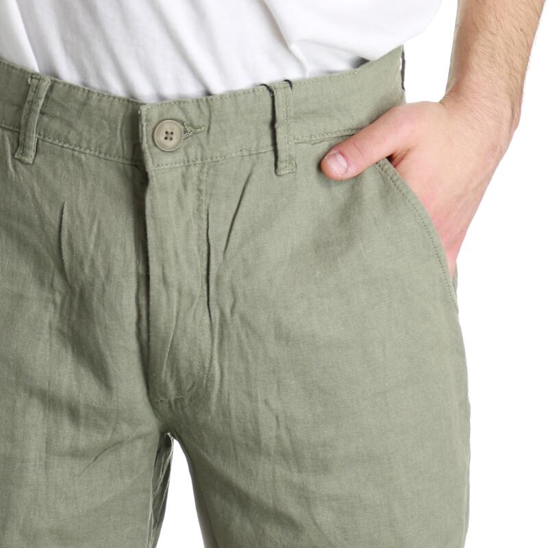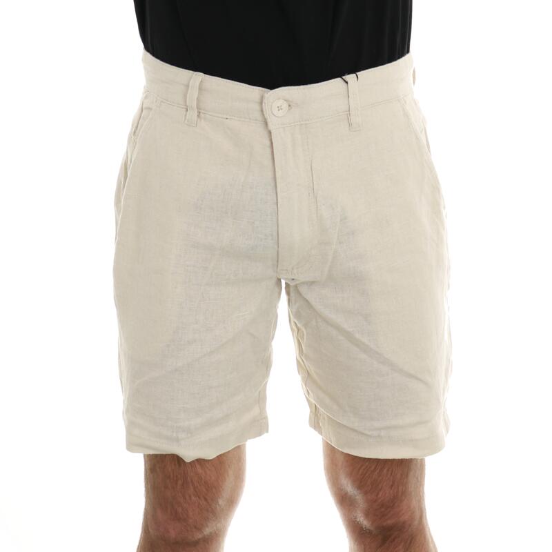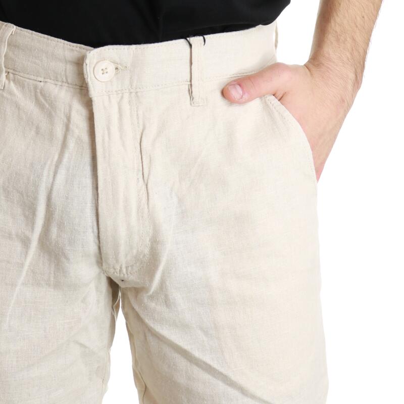 Pantalone corto in misto lino, tasche america, vita media. Vestibilità slim.