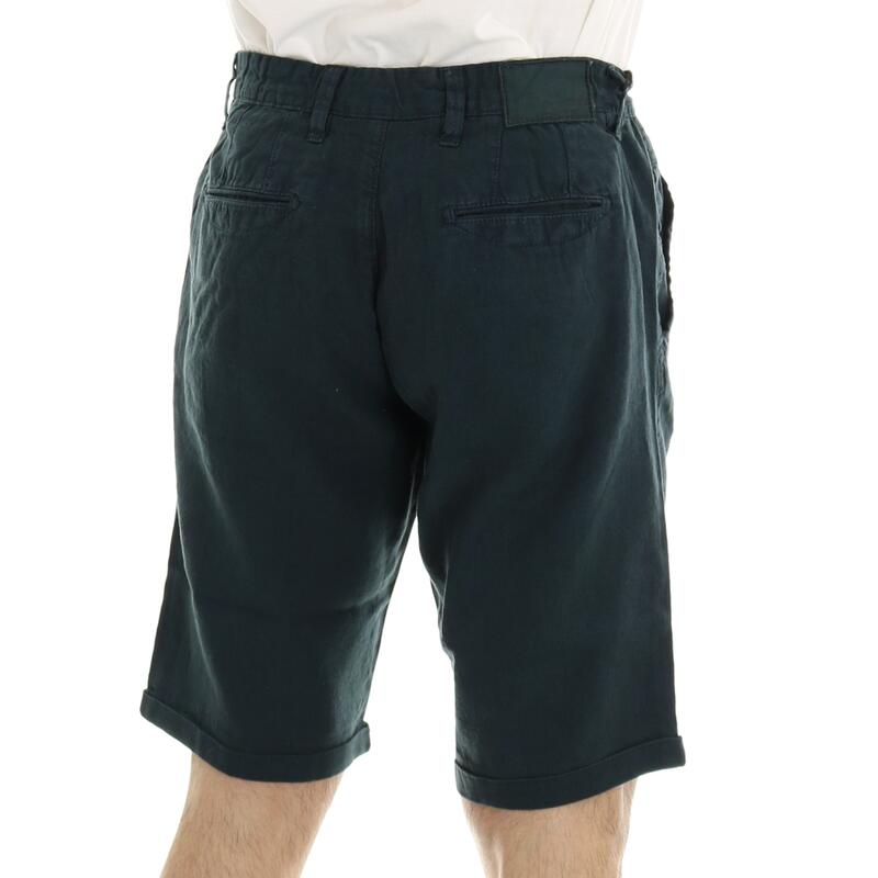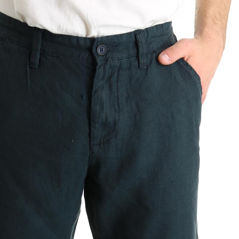 Pantalone corto in misto lino, modello chino con tasche america. Vestibilità slim.