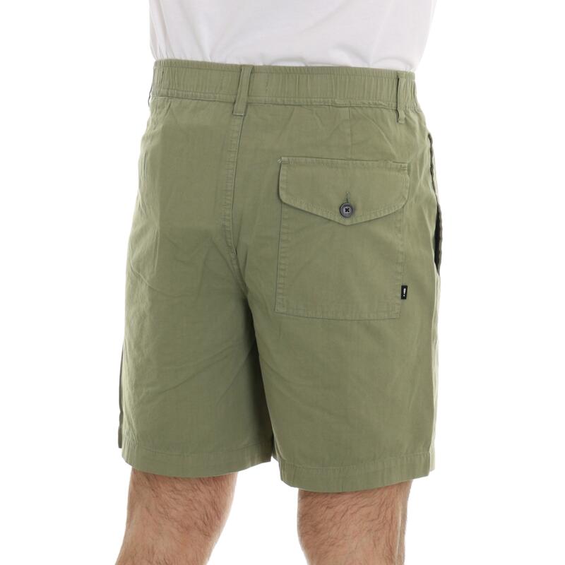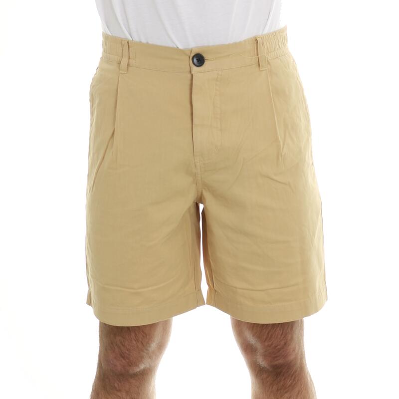 Pantalone corto in cotone, vita media con elastico e pinces. Vestibilità regular.