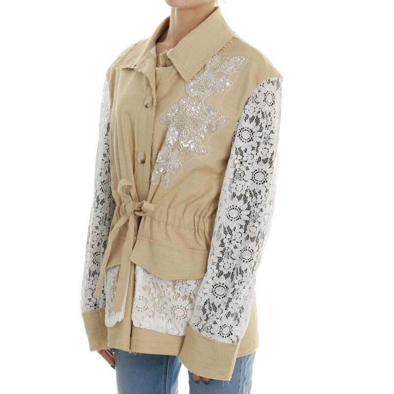 Giacca modello sahariana con inserti in pizzo e ricami. Vestibilità regular.