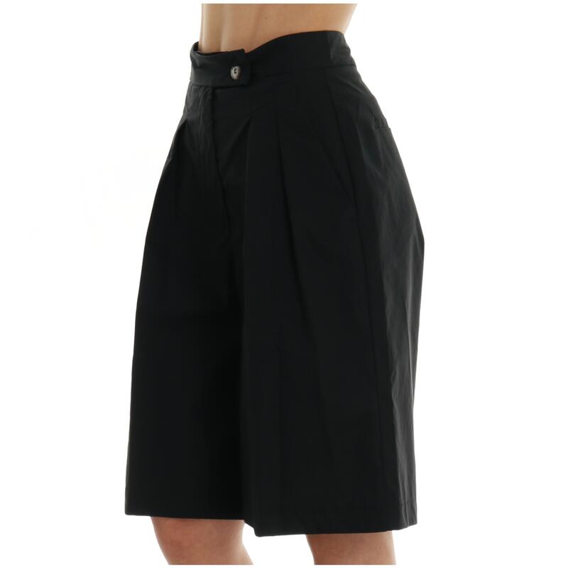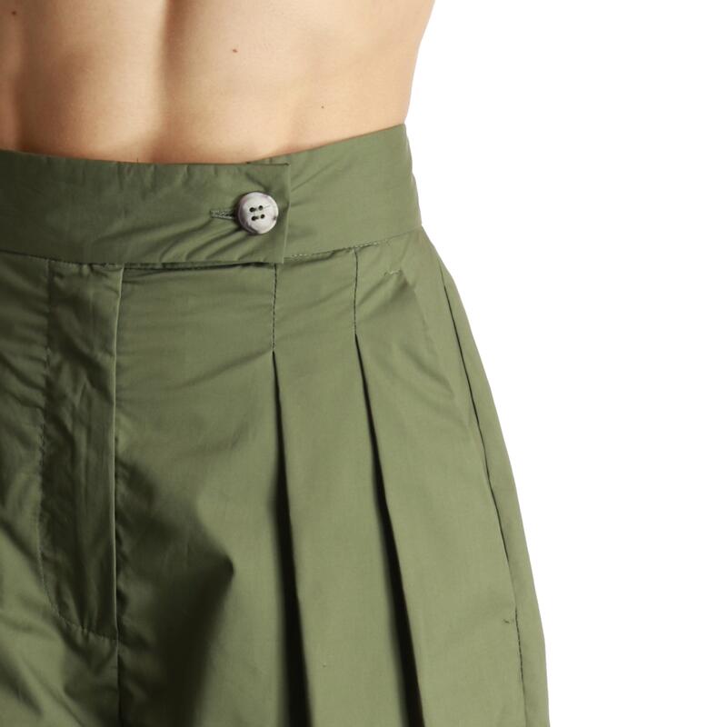 Pantalone corto in cotone, vita alta con pinces. Vestibilità regular.
