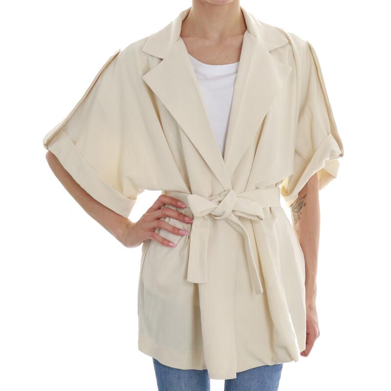 Giacca in misto lino con cintura, manica corta. Vestibilità regular.