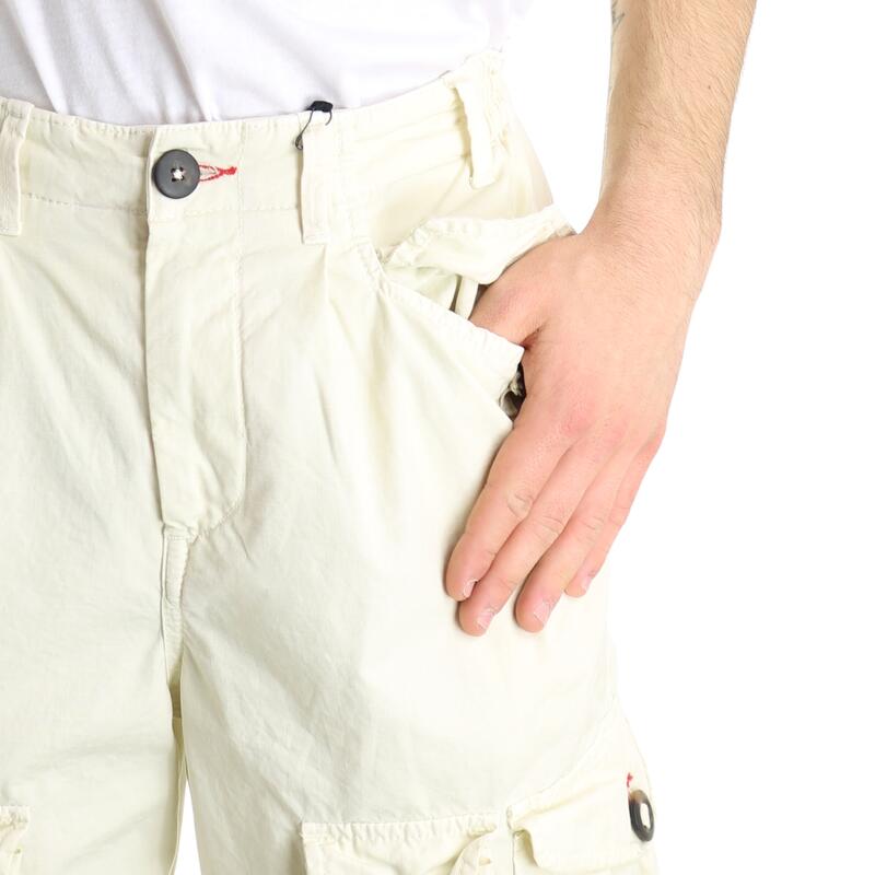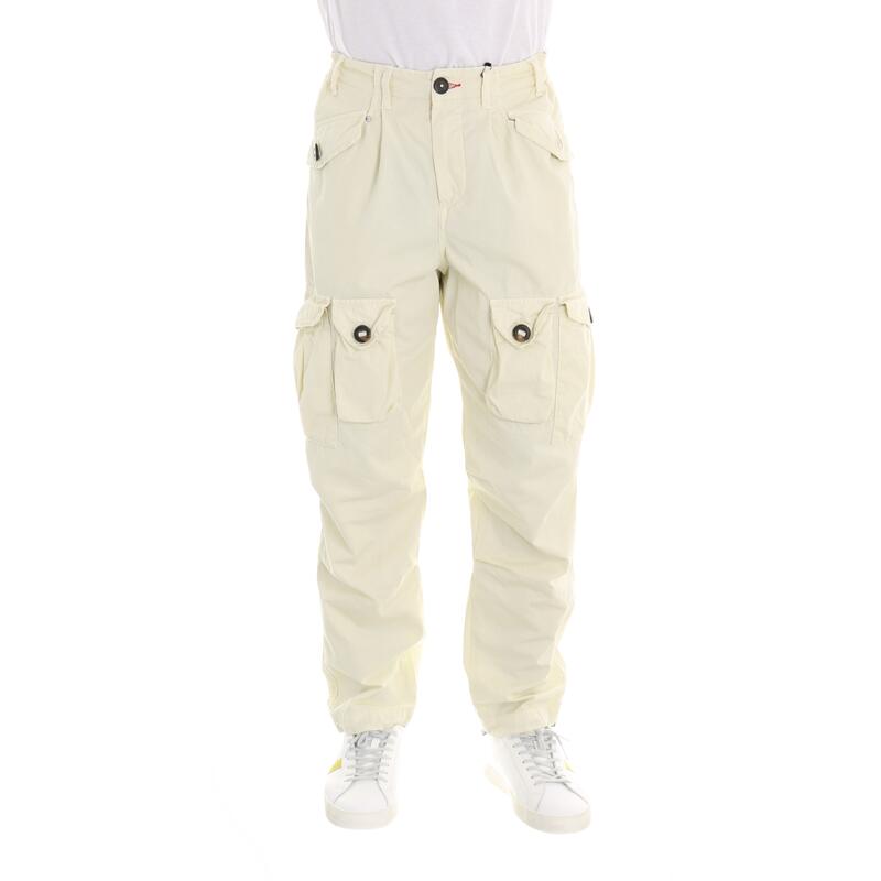 Pantalone con tasche laterali, cavallo calato con pinces. Vestibilità baggy.