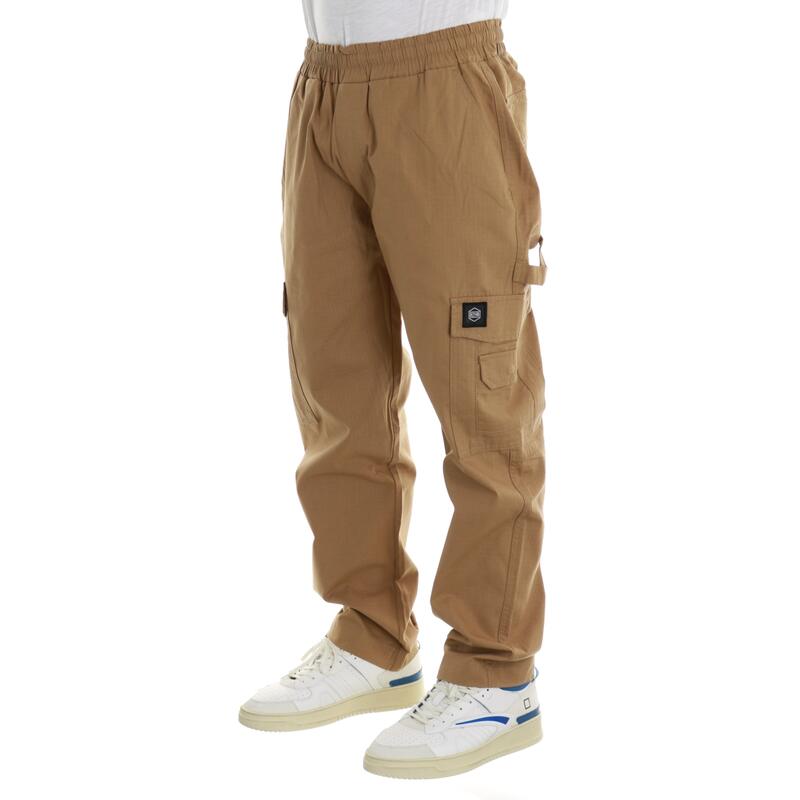 Pantalone cargo modello baggy con elastico in vita in tessuto ripstop. Vestibilità regular.
