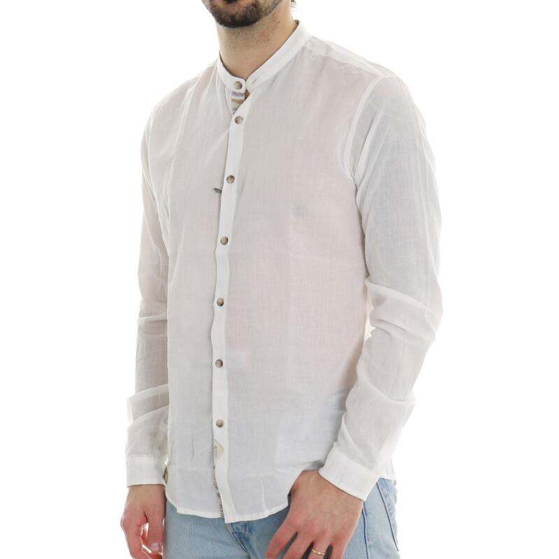 Camicia con collo alla coreana, dettaglio a contrasto sotto bottone. Vestibilità slim.