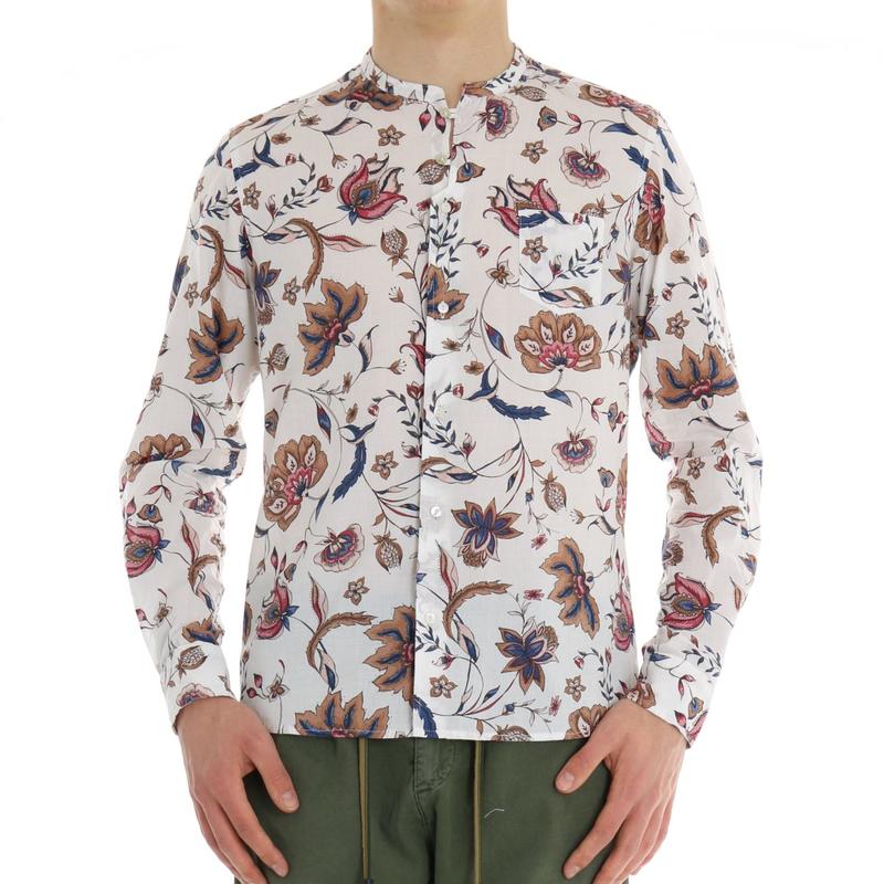 Camicia manica lunga con collo alla coreana in fantasia con taschino frontale. Vestibilità slim