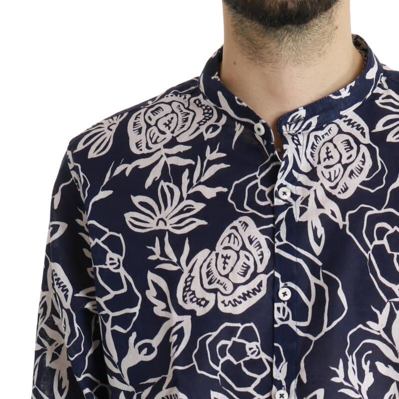Camicia in fantasia floreale con collo alla coreana. Vestibilità regular.