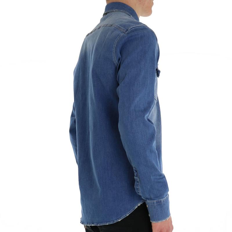 Camicia uomo denim stretch, bottoni automatici, multitasche, vestibilità slim