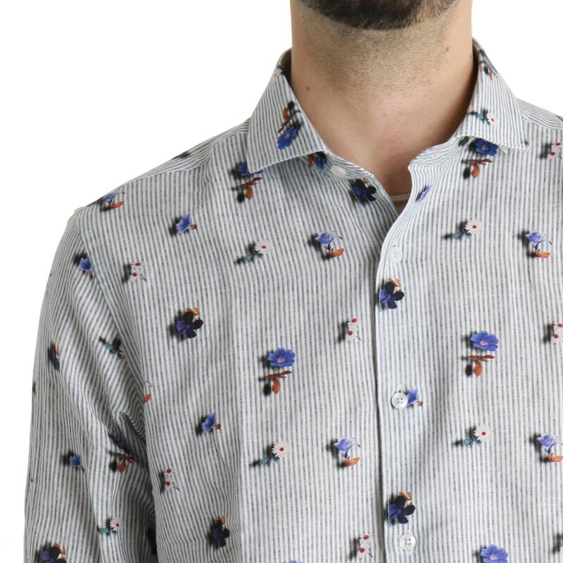 Camicia a maniche lunghe in fantasia, collo inglese, pinces. Vestibilità slim.
