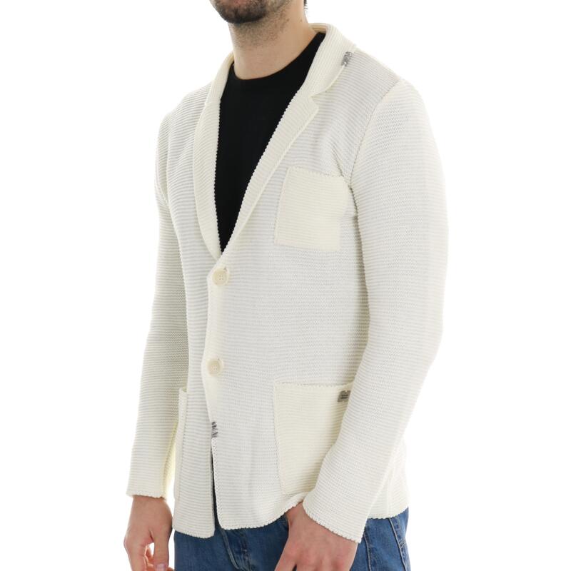 Giacca in maglia monopetto con due bottoni. Vestibilità slim.