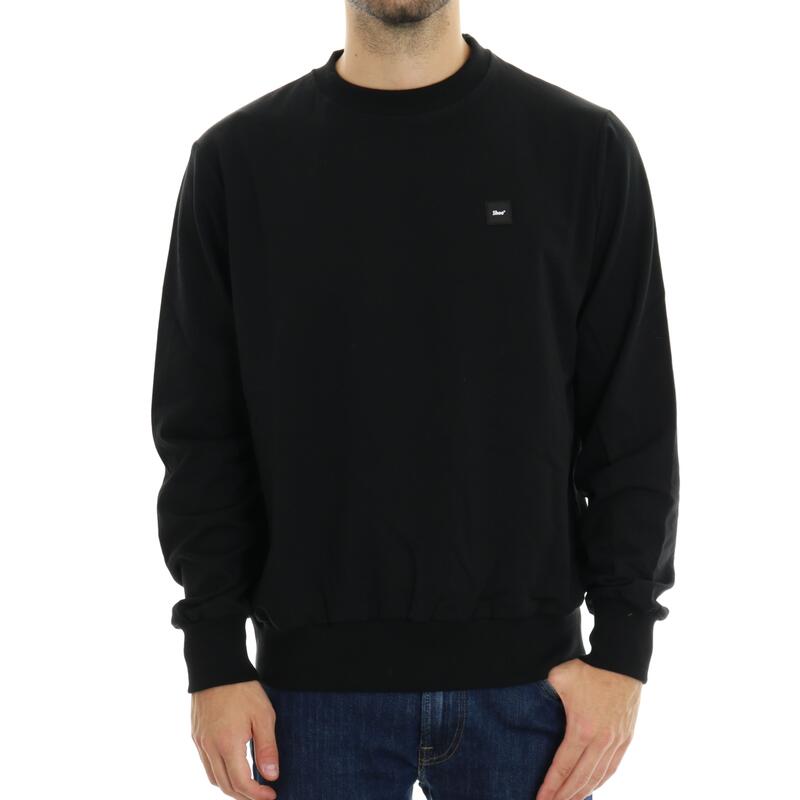 Felpa girocollo garzata, tinta unita, logo patch frontale. Vestibilità regular.