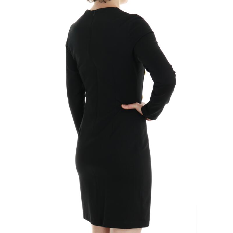 Vestito in punto milano a maniche lunghe, girocollo, bottoni dorati laterali. Vestibilità slim.