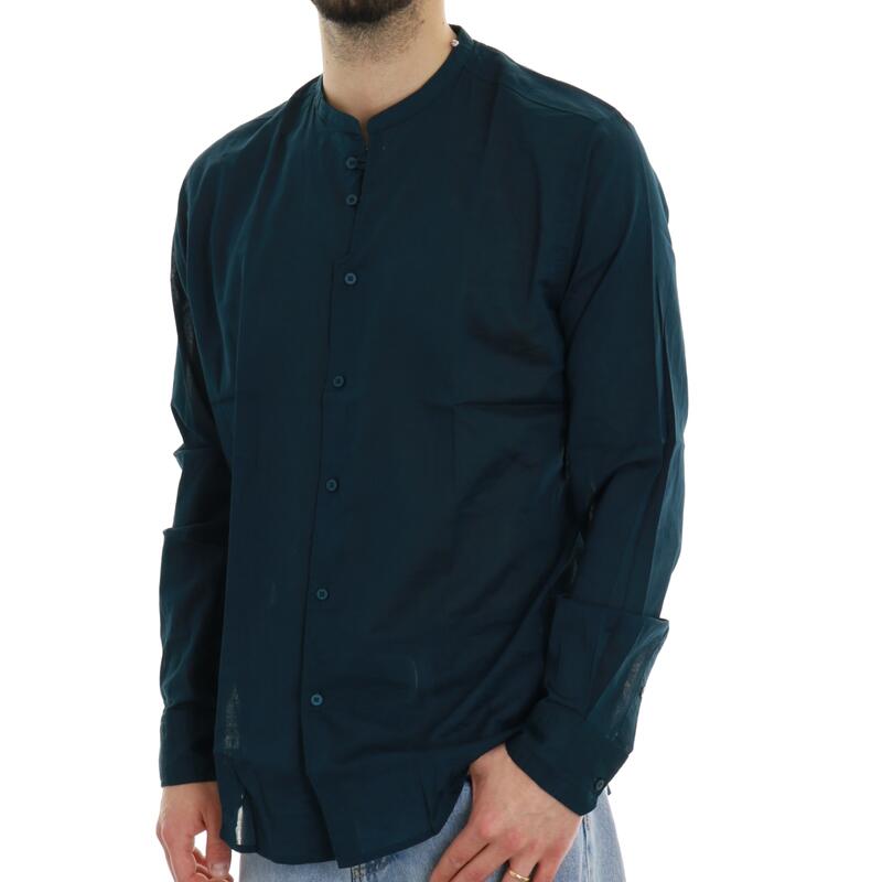 Camicia con collo alla corena tinta unita. Vestibilità slim.
