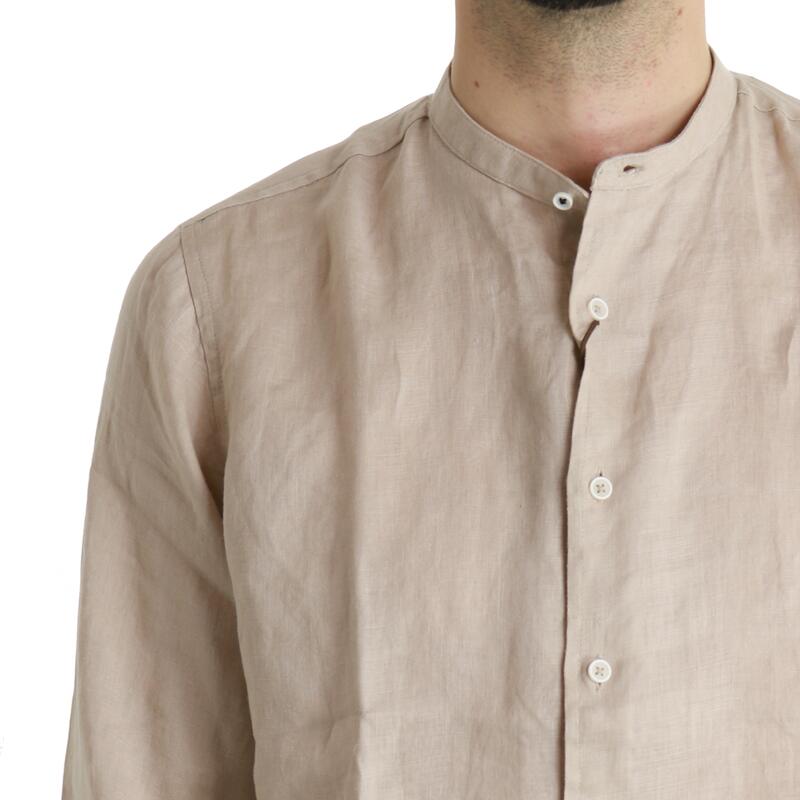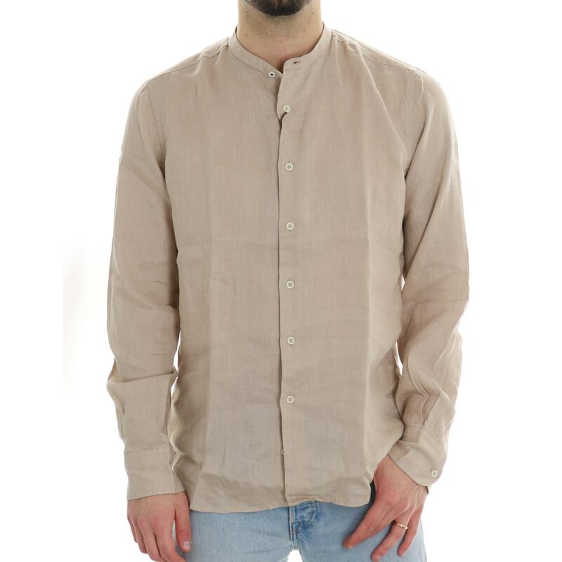Camicia in lino con collo alla coreana. Vestibilità regular.