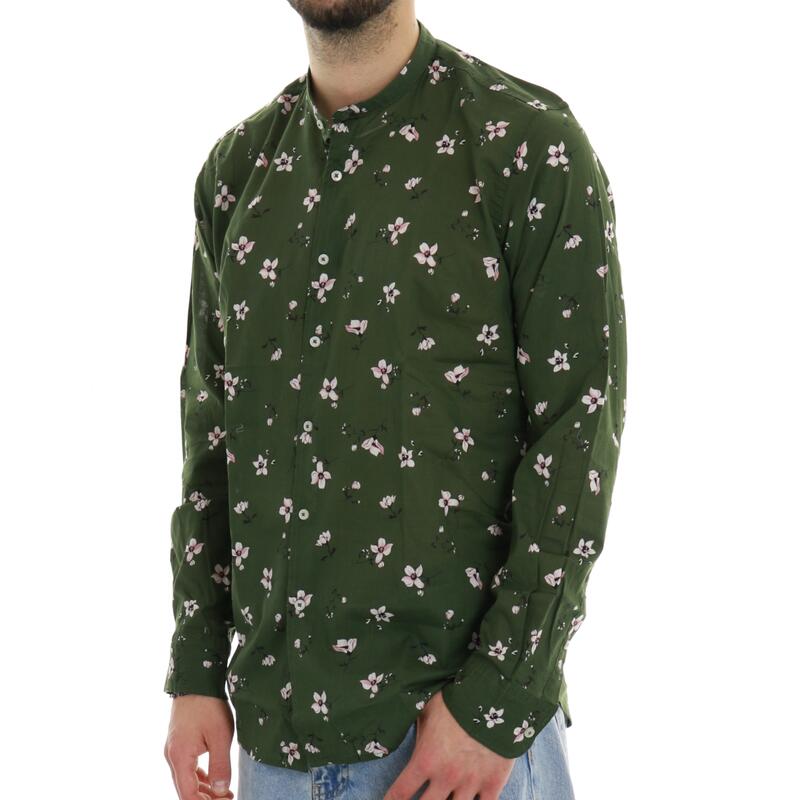 Camicia in fantasia con collo alla coreana. Vestibilità slim.