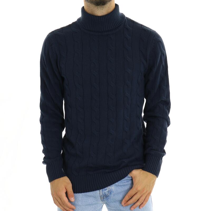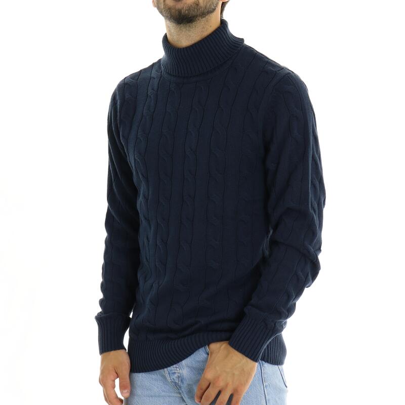 Maglia a collo alto, lavorazione a treccia in rilievo tono su tono, polsini e balza in fondo. Vestibilità regular.