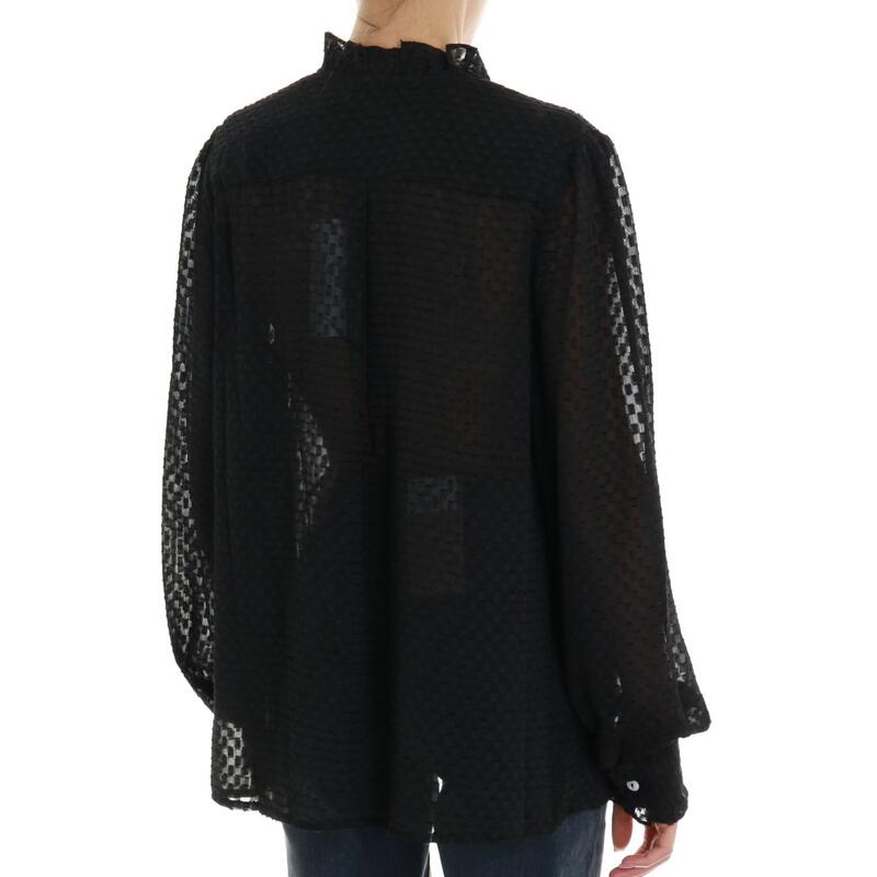 Camicia in fantasia tono su tono geometrica, rouches. Vestibilità regular.