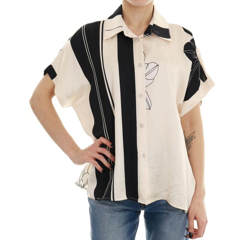 Camicia mezza manica in fantasia com bottoni e collo inglese. Vestibilità regular.