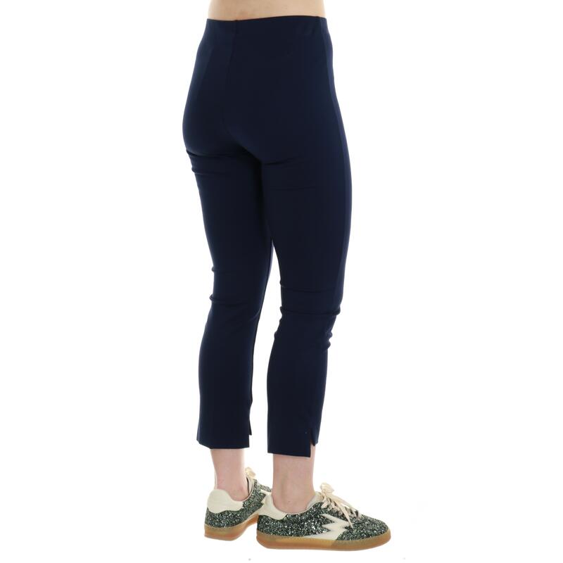 Pantalone in punto milano tinta unita, vita alta, stretch, lunghezza alla caviglia. Vestibilità slim.