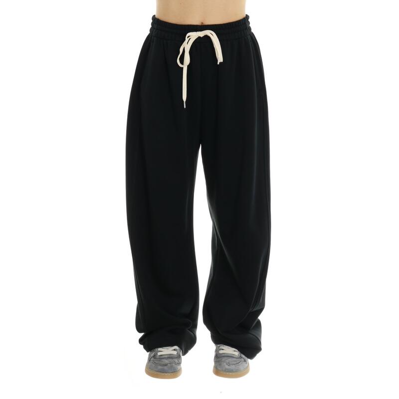 Pantalone in felpa modello barrel, vita alta con elastico. Vestibilità regular.