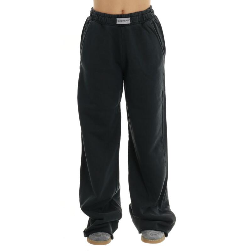 Pantalone a palazzo in felpa garzata, logo sull'elastico in vita, orlo taglio vivo. Vestibilità regular.