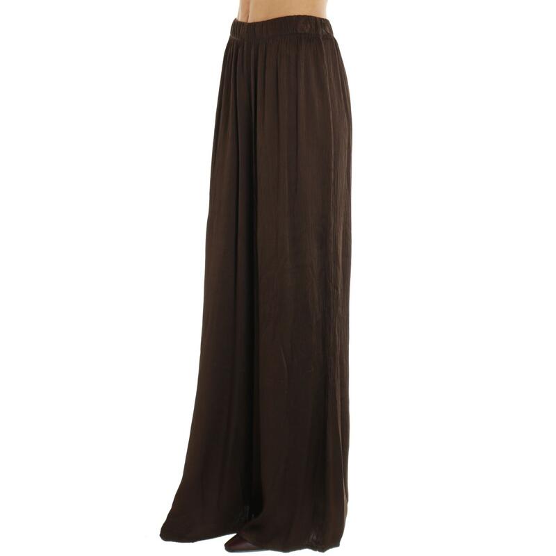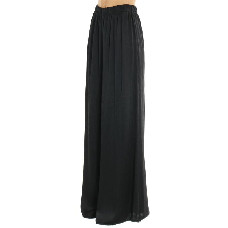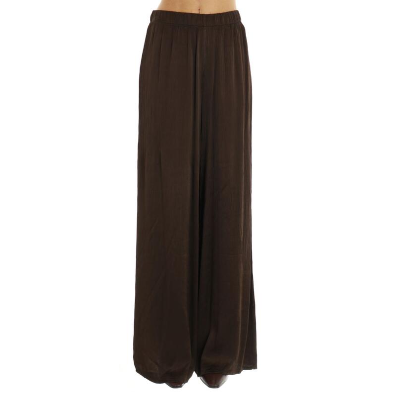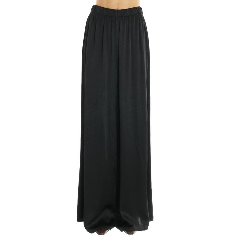 Pantalone a palazzo in viscosa, vita alta con elastico. Vestibilità regular.