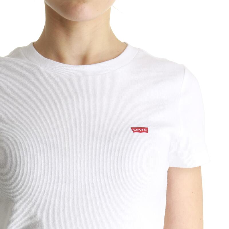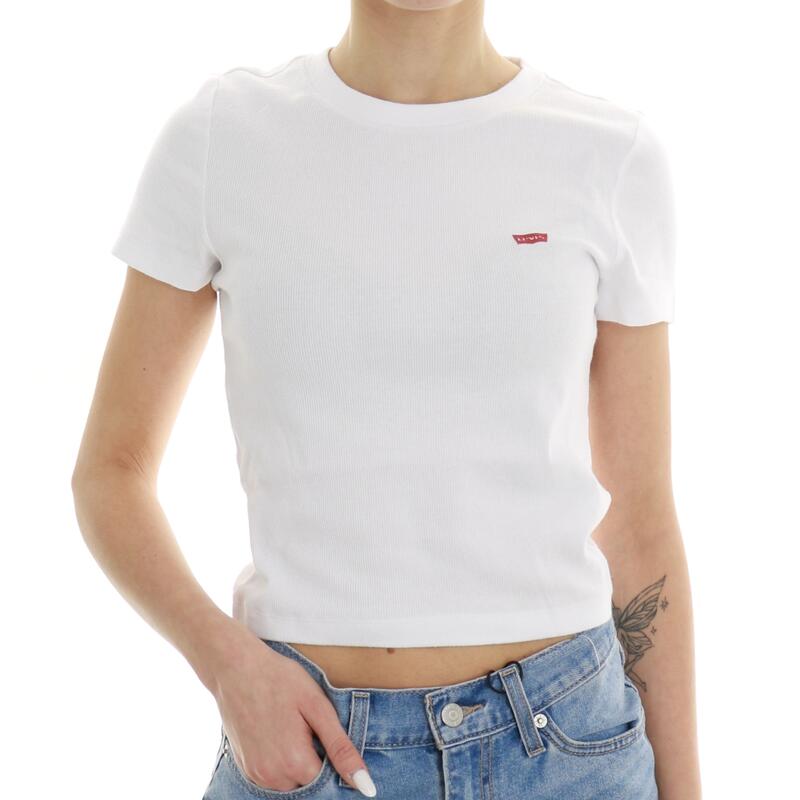 T-shirt crop a costine con mini logo. Vestibilità slim.