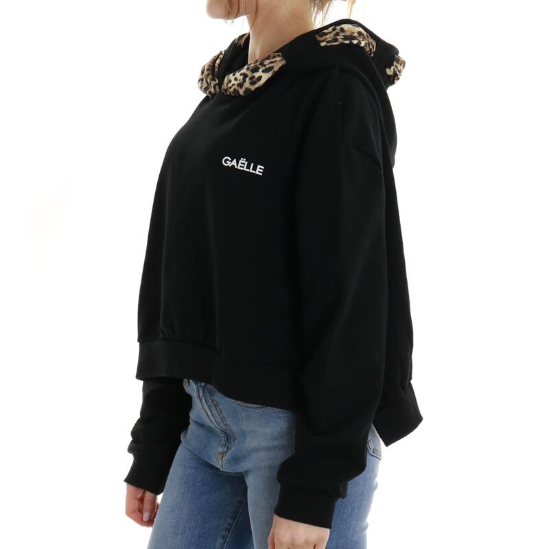 Felpa crop con cappuccio, mini logo frontale e dettaglio leopardato. Vestibilità regular.