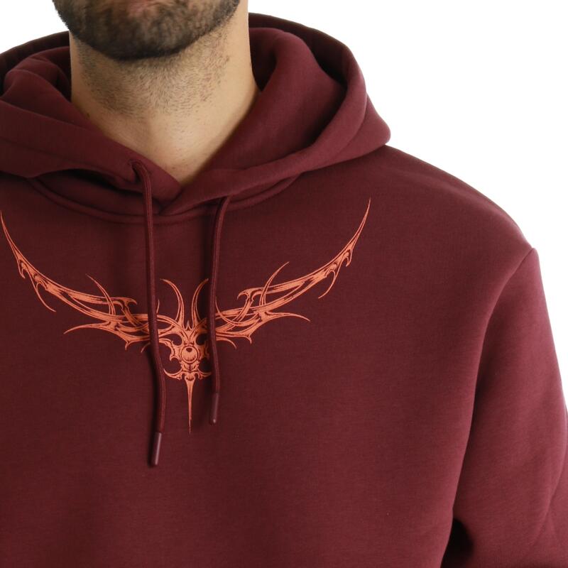 Felpa chiusa con cappuccio, mini logo frontale e maxi stampa dietro. Vestibilità regular.