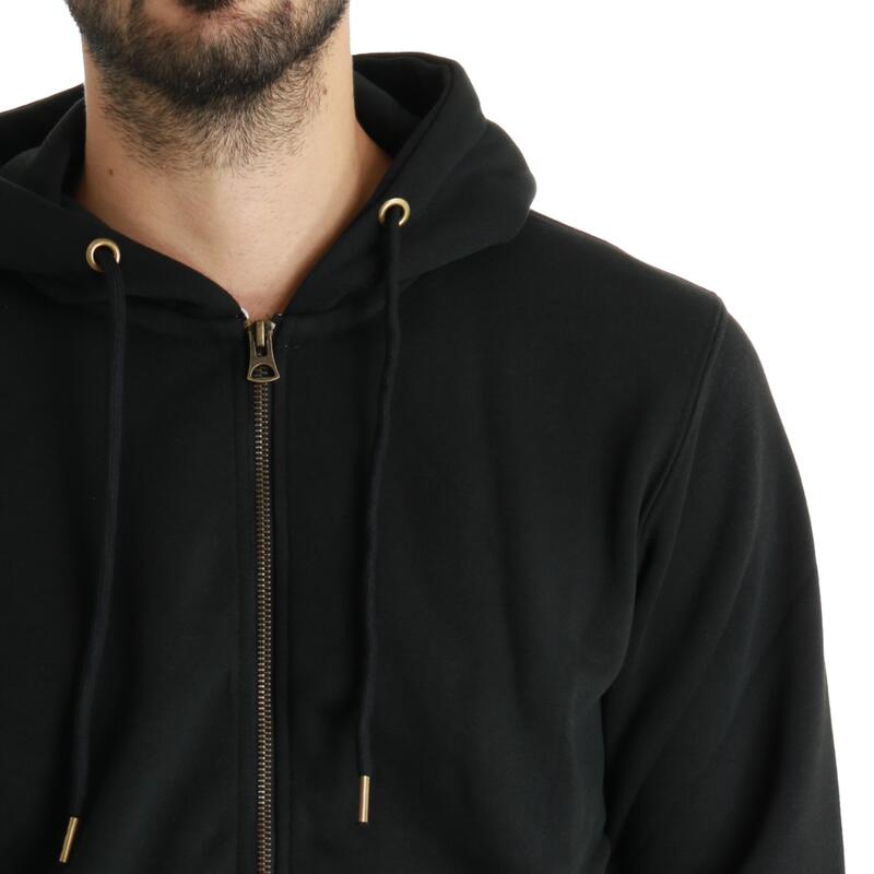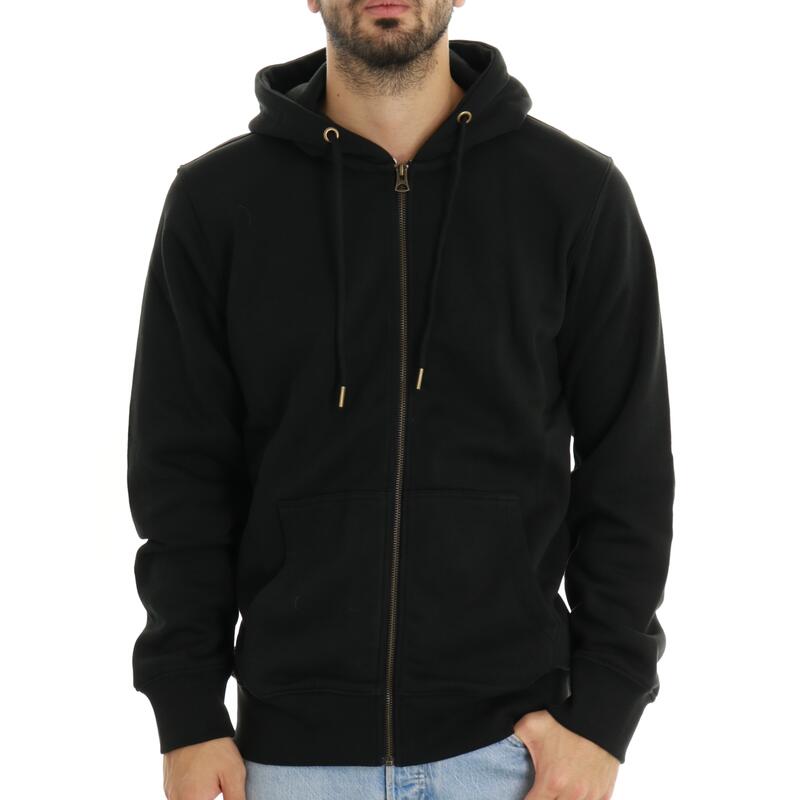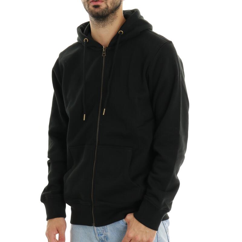 Felpa basic con zip, cappuccio e tasche. Vestibilità regular.