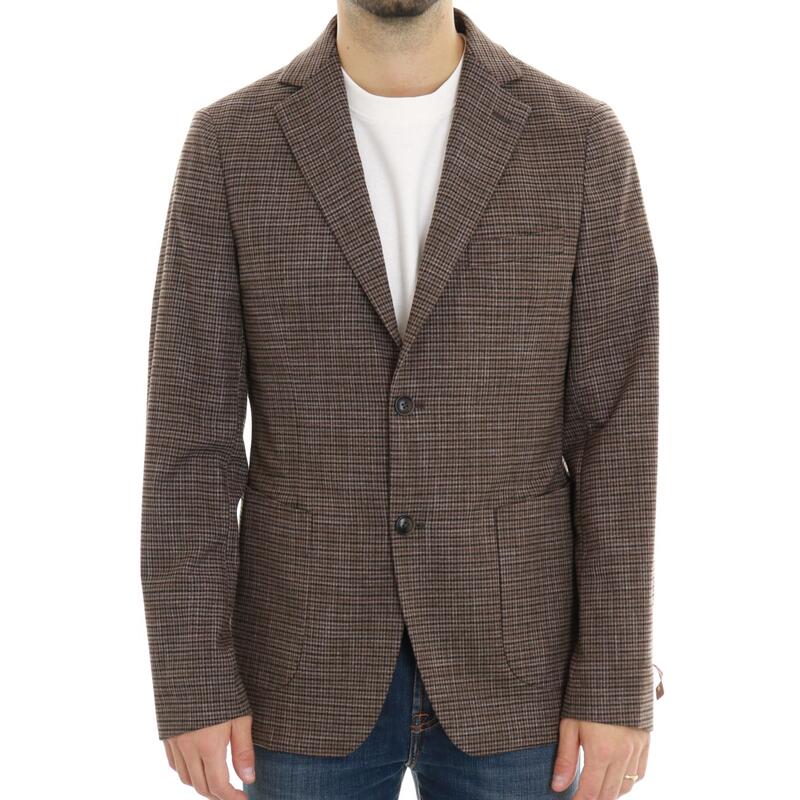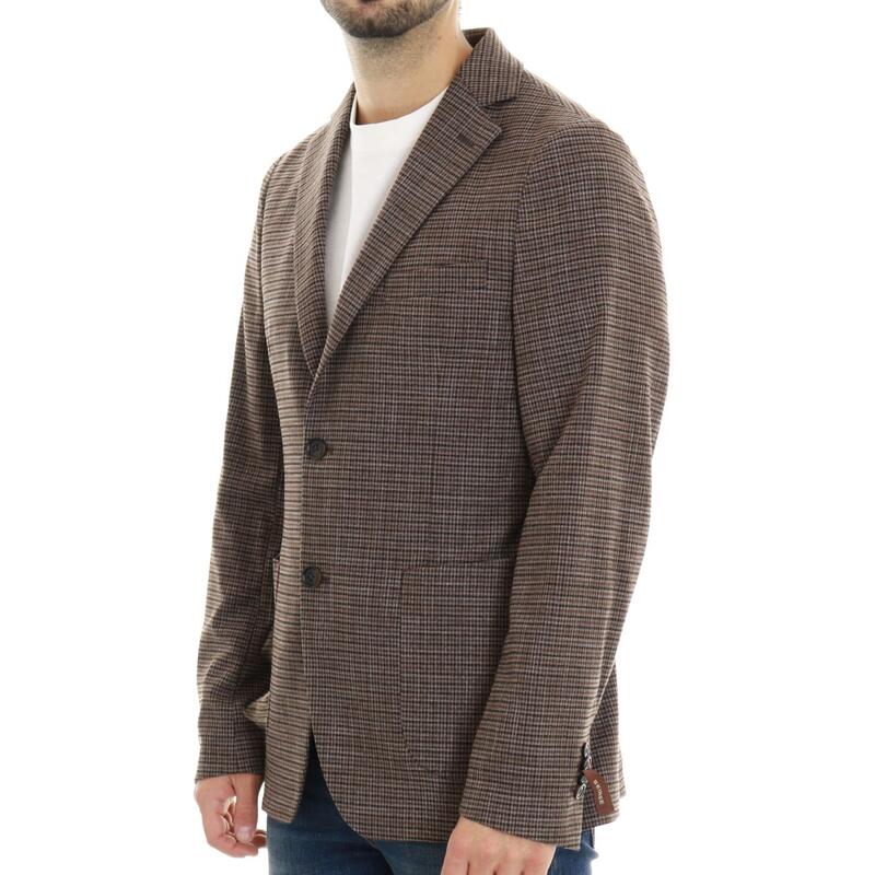 Giacca monopetto in fantasia quadretti, rever classico. Vestibilità regular.