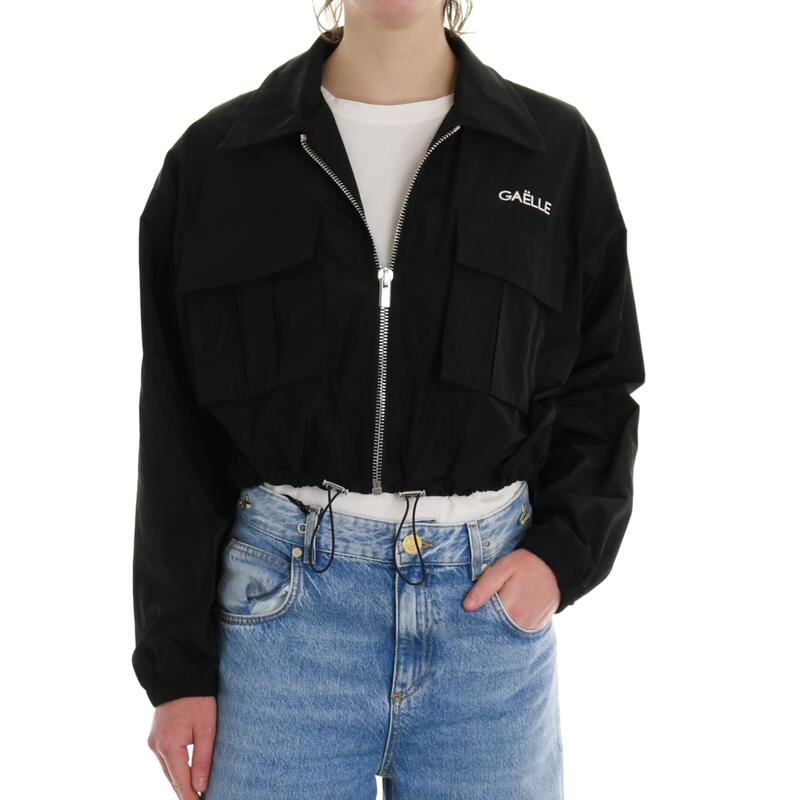 Giubbotto crop con coulisse e zip, logo stampato. Vestibilità regular.
