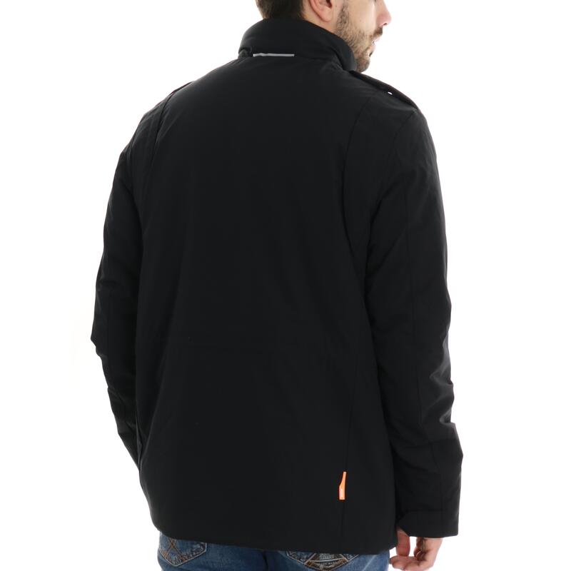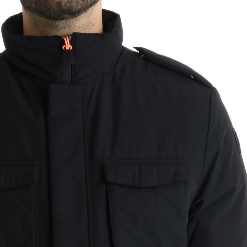 Giubbotto imbottito in ecopiuma, collo in piedi, multi tasche, strato esterno impermeabile. Vestibilità regular.