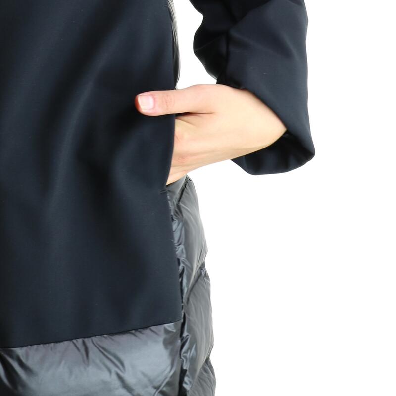 Piumino con cappuccio in tessuto tecnico stretch, impermeabile, traspirante, pelliccia staccabile, inserti in nylon con filze, zip frontale doppio cursore, modello svasato. Vestibilità slim.