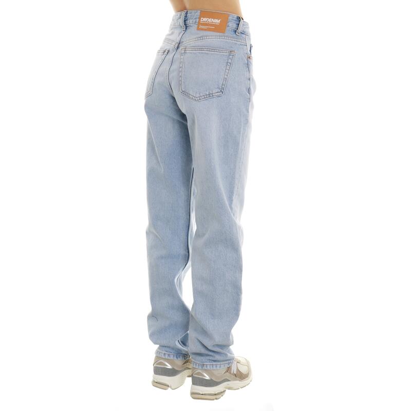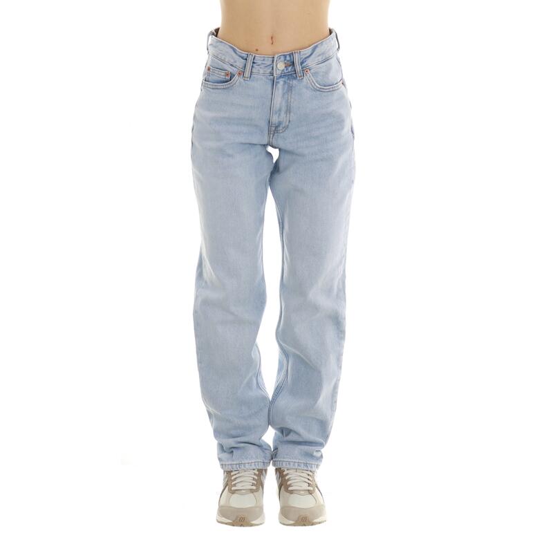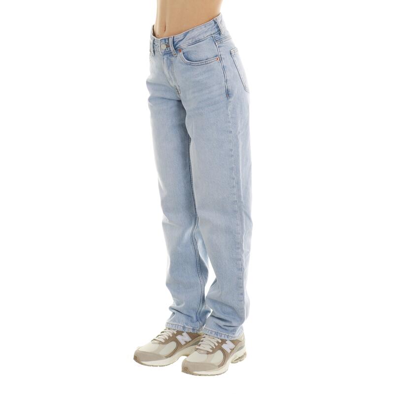 Jeans stretch, vita media, gamba dritta, chiusura con bottone e zip. Vestibilità regular.
