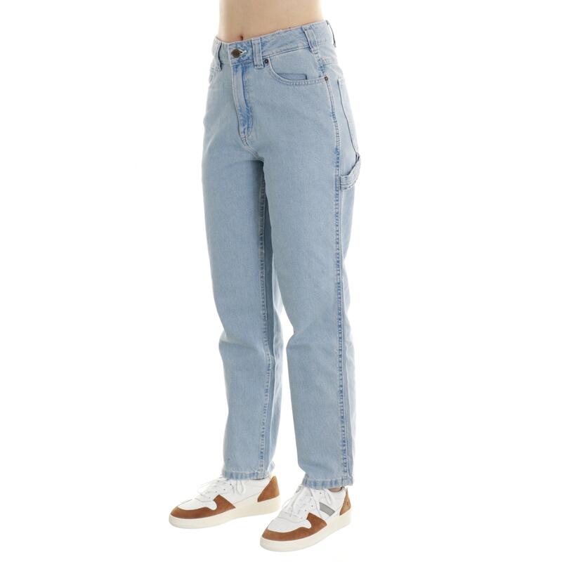Jeans work non stretch, lavaggio chiaro, vita alta, chiusura con bottone e zip. Vestibilità regular.