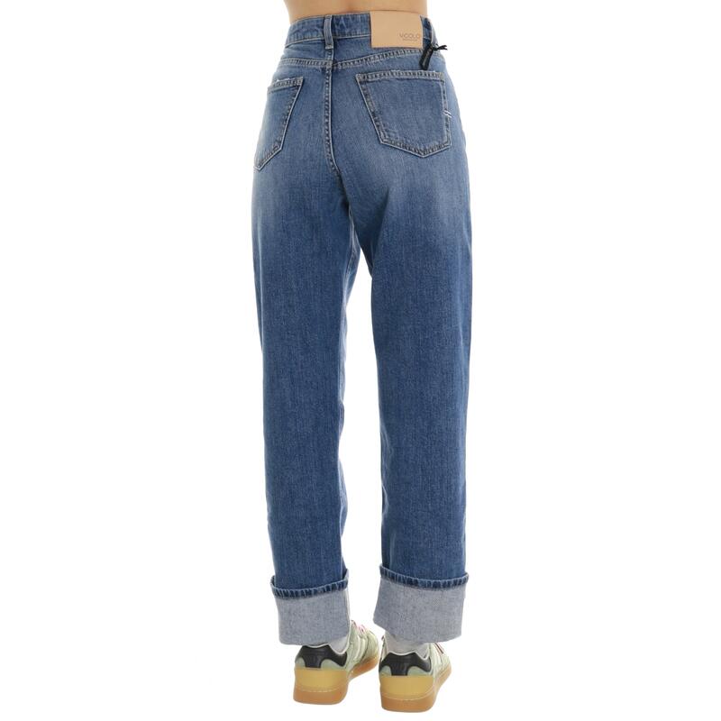 Jeans morbido a gamba larga e vita media. Chiusura con bottone e zip. Vestibilità regular.