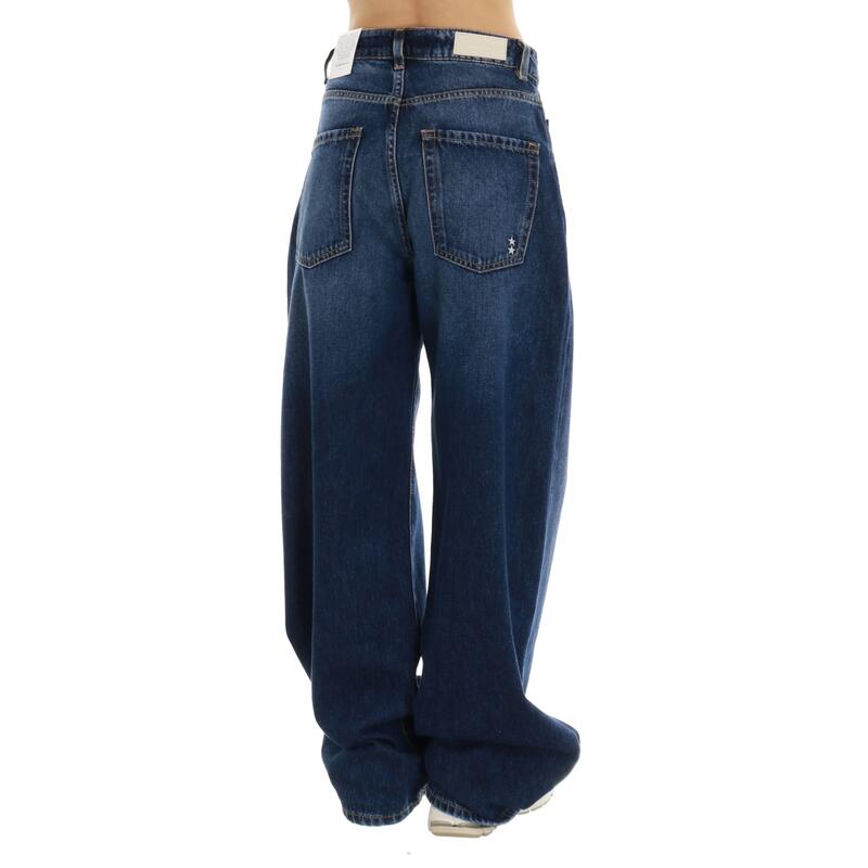 Jeans morbido a vita alta, lavaggio medio. Vestibilità over, si consiglia almeno mezza taglia sotto rispetto a quella solita.