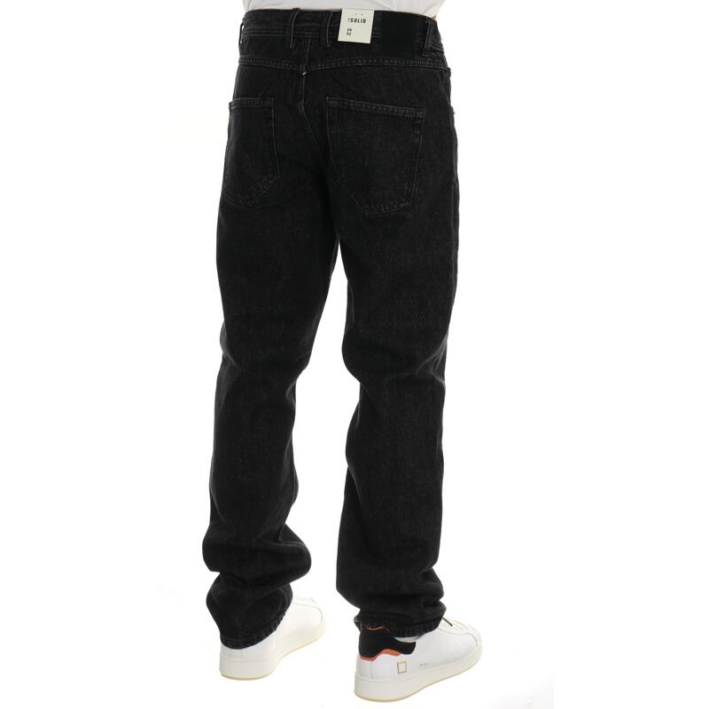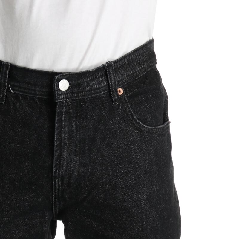 Jeans non stretch lavaggio nero, vita media, chiusura con bottone e zip. Vestibilità regular.