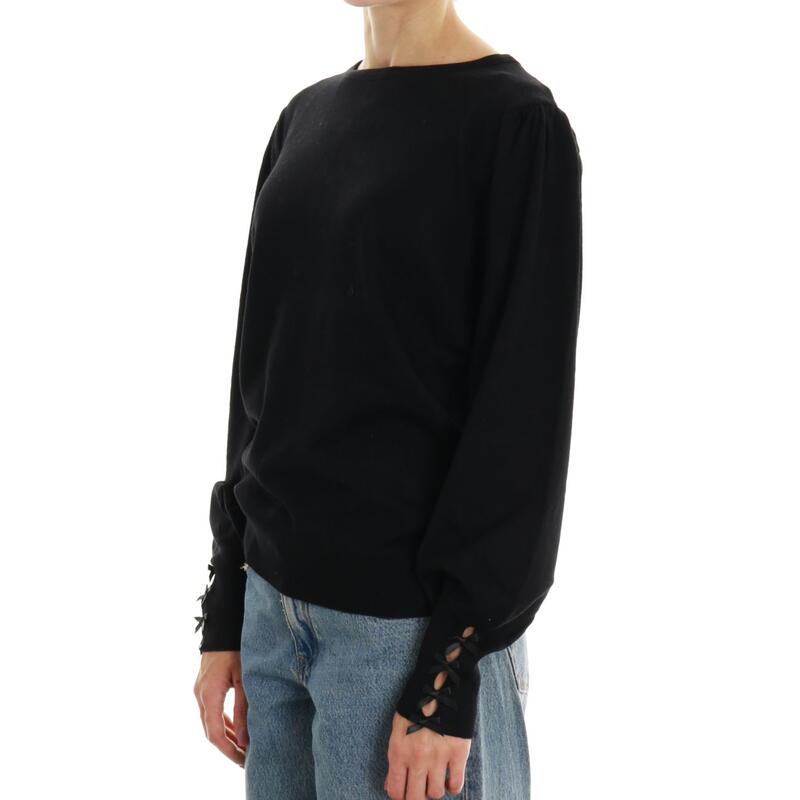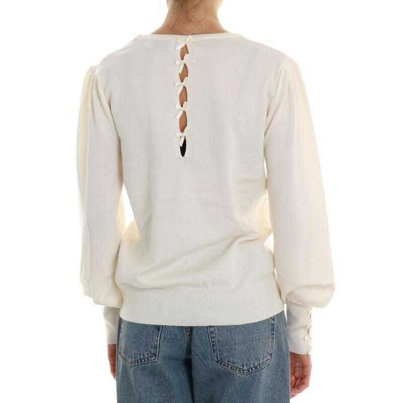 Maglia girocollo con fiocchini applicati sui polsini e dietro. Vestibilità regular.
