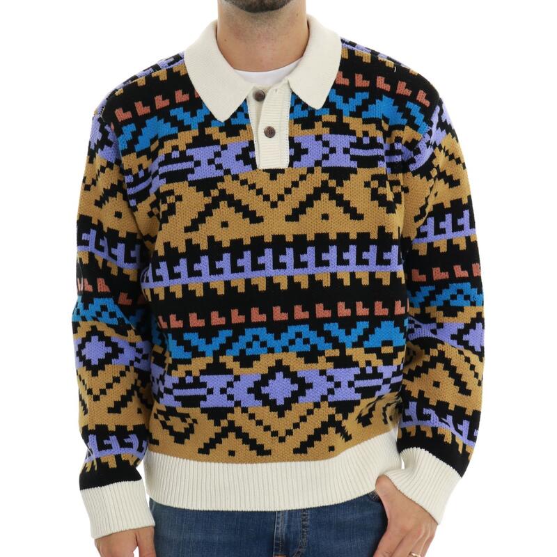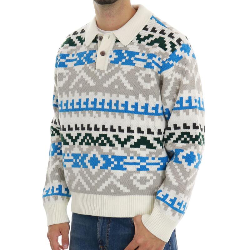Maglia con olletto e bottoni, in fantasia geometrica. Vestibilità regular.