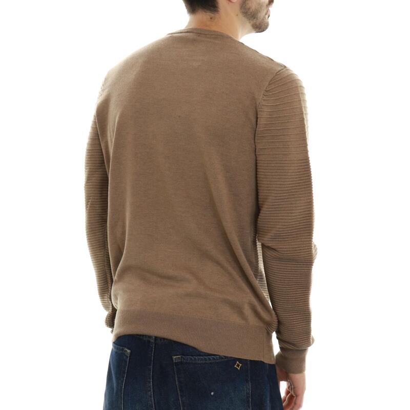 Maglia girocollo lavorazione a righe tono su tono. Vestibilità regular.