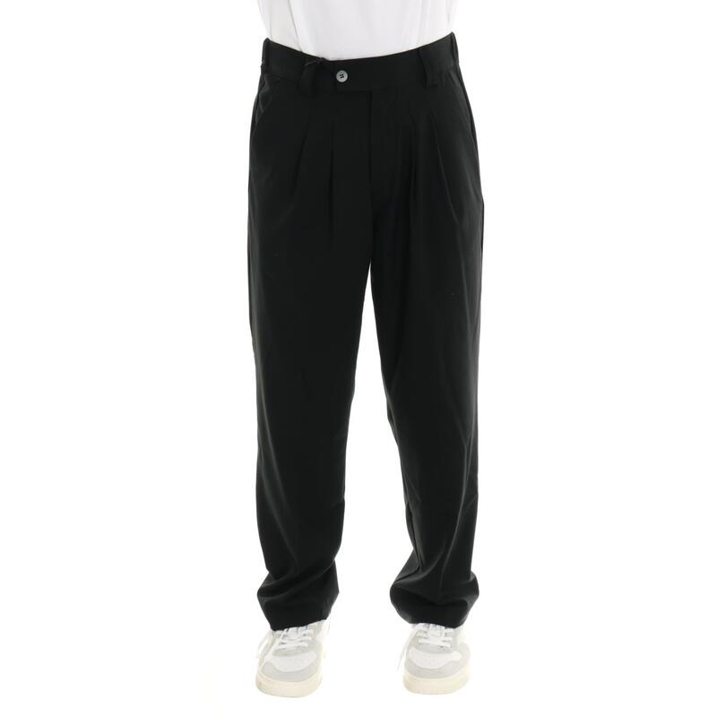 Pantalone con cavallo calato, vita media con pinces, tasche america, cinturino strutturato con passanti. Vestibilità regular.