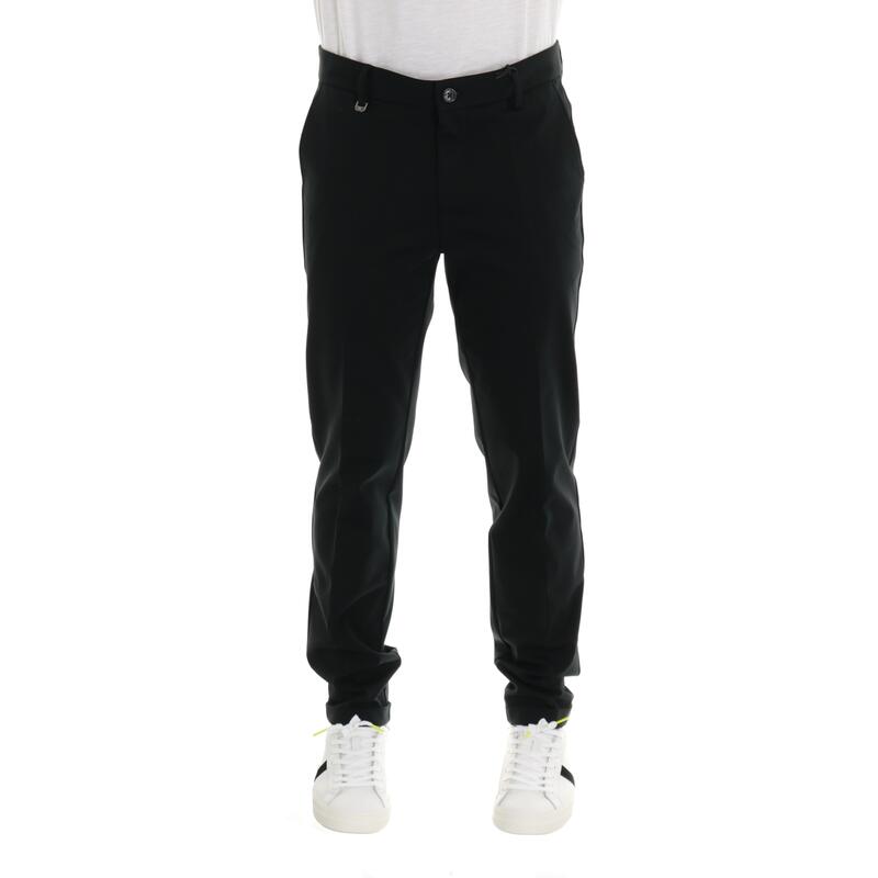 Pantalone stretch in punto milano, vita media. Vestibilità slim.