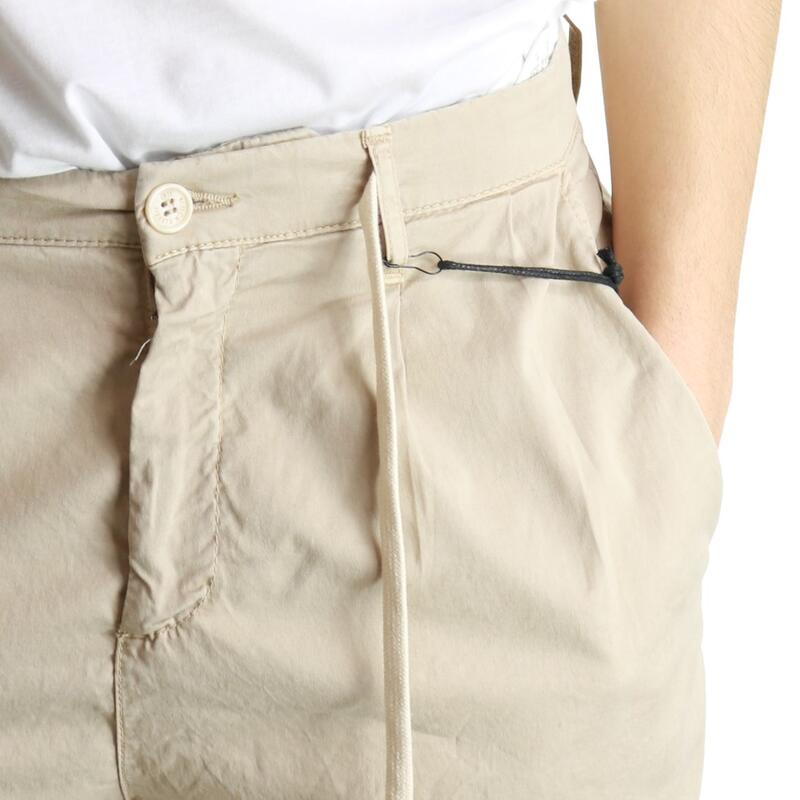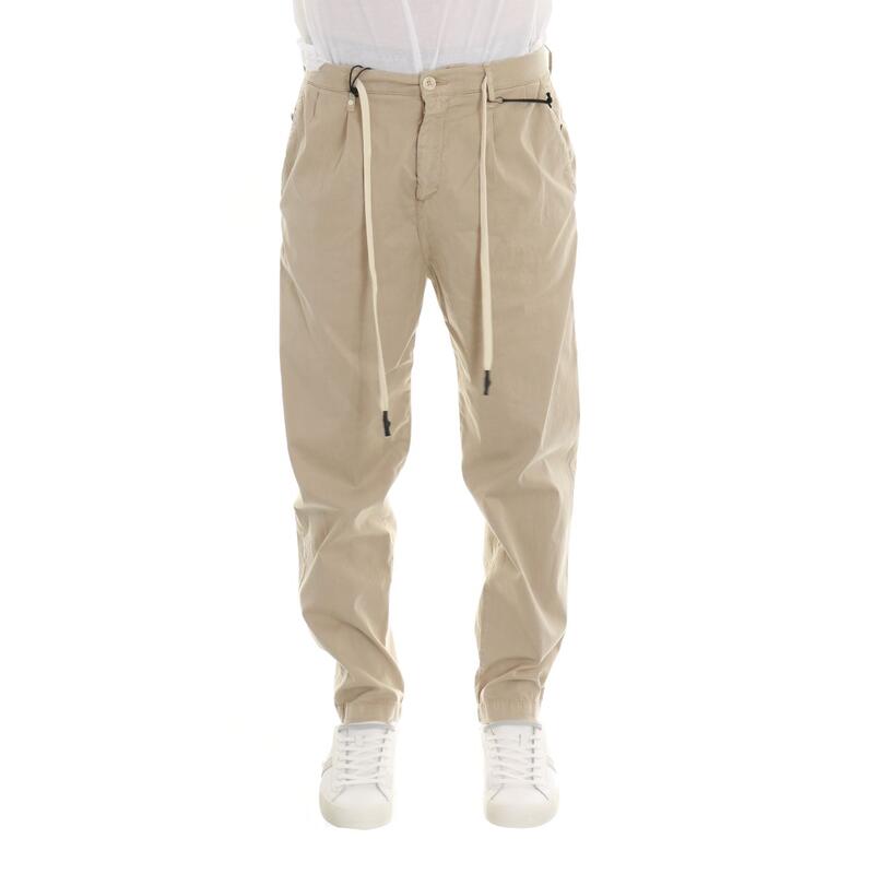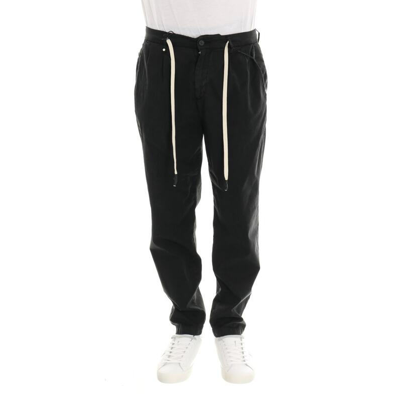Pantalone cavallo calato, vita media con laccio. Vestibilità regular.