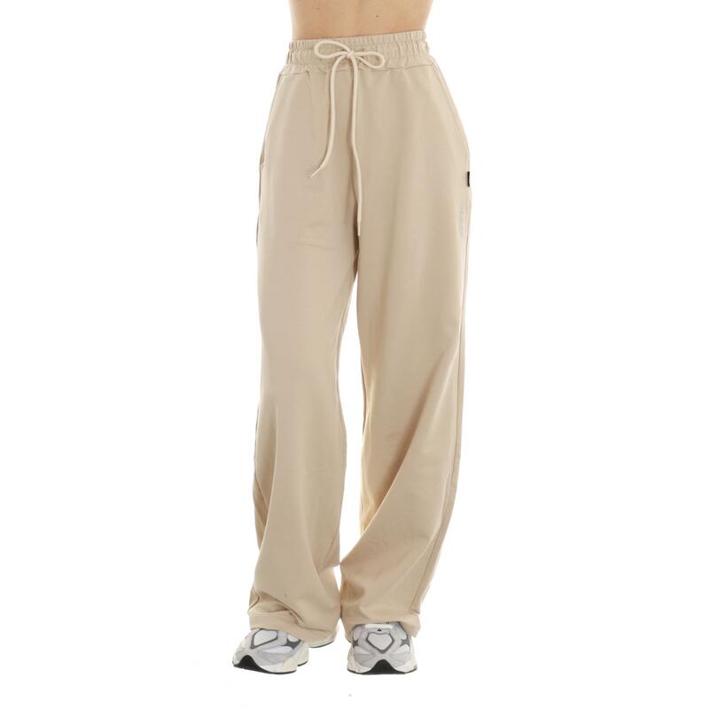Pantalone in felpa garzata a palazzo, vita alta con elastico. Vestibilità regular.