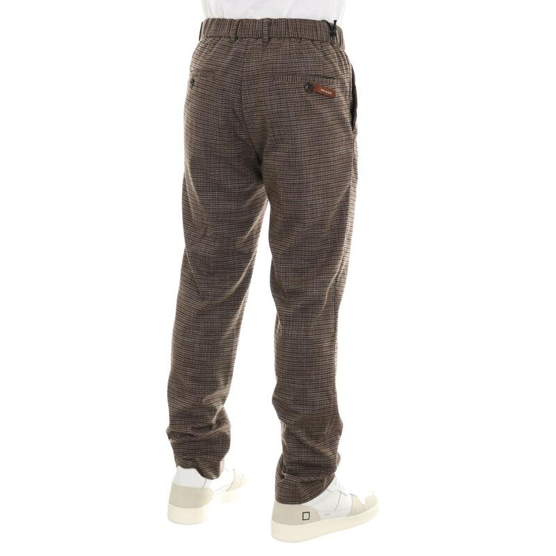 Pantalone con pinces e vita media, in fantasia check, tasche america. Vestibilità regular.