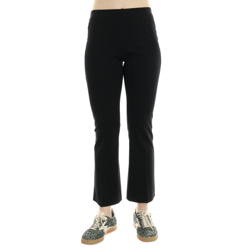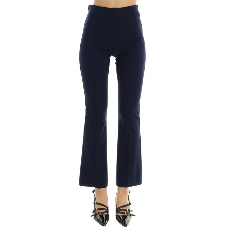 Pantalone stretch, vita alta, elastico in vita. Vestibilità slim.