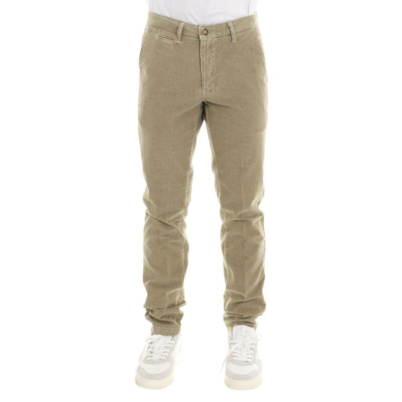 Pantalone in velluto stretch microfantasia tono su tono, vita media, tasche america. Vestibilità regular.
