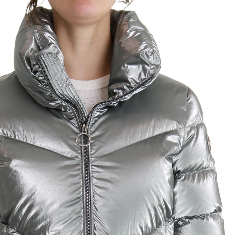 Giubbotto imbottito in piuma d'oca, collo in piedi, logo gommato. Vestibilità slim.
